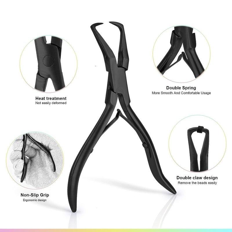 - Micro Beads Remover Pliers: This Pliers have specially adjusted jaws to squeeze in and open the rings. The unique handle provide a comfortable and strong grip. The Pliers is easy to use and save time.