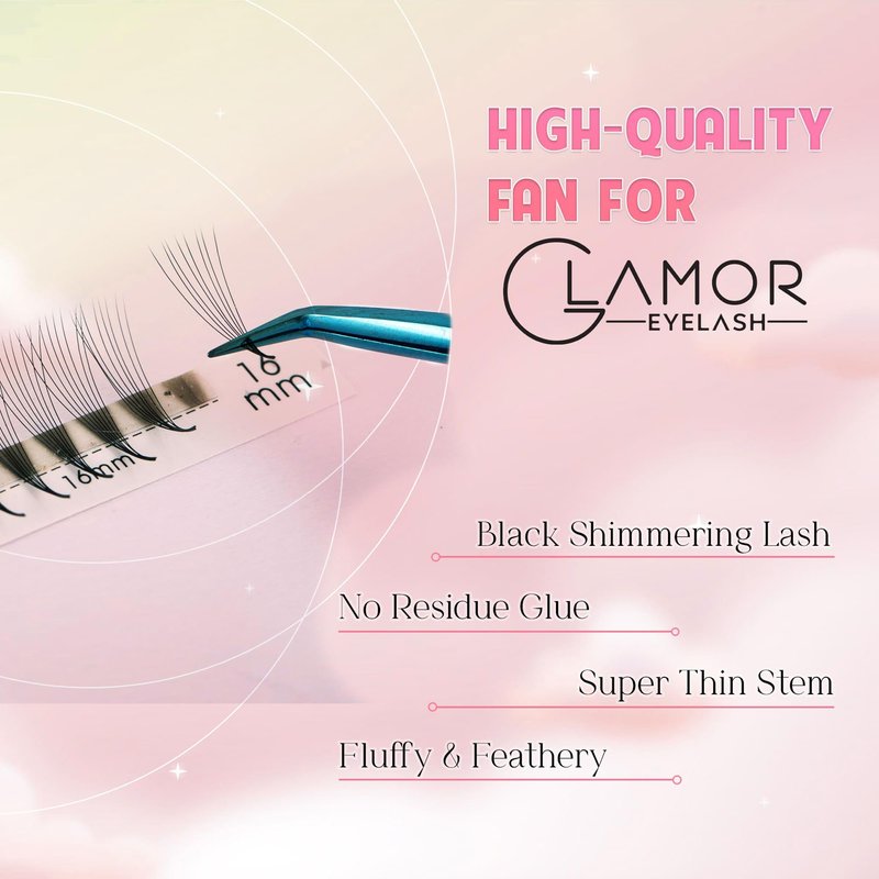Glamor's Promade Fans stand out from other Premade Fans and colored fans eyelash extensions with the top material. Our Fan Lashes are the perfect combination of the soft, fluffy, lightweight nature of mink lashes with the curly, natural, and dense look of synthetic lashes.