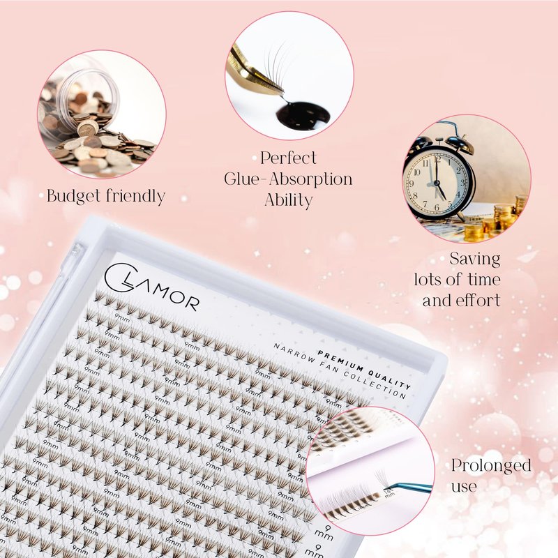- ✨ FINEST NARROW PROMADE GLAMOREYELASH: Promade Narrow Fans Lash Extension combines the best qualities of synthetic mink and silk lashes, blending the fluffy, lightweight nature of individual mink lashes. If you want to boost your natural cluster lashes speed while generating stunning and awe-inspiring eyelashes natural look, these lashes are for you.