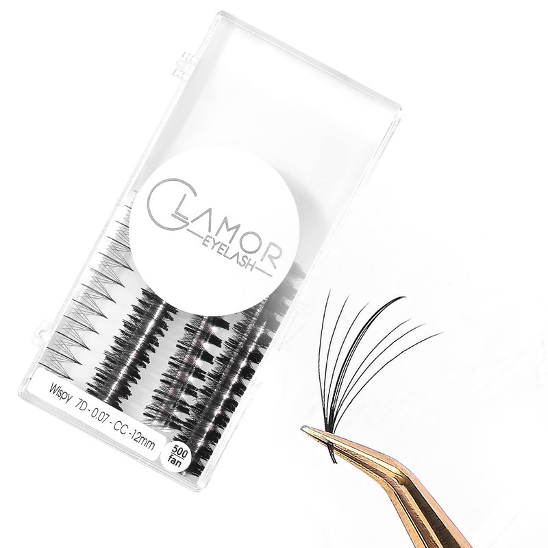 GLAMOREYELASH 500 Ultra Speed Promade Fans, Natural Wispy Eyelash Extension 5D 7D 9D Individual Lashes Mink Lashes, 0.05/0.07mm, C CC D Curl, 8-16mm Length for Fluffy Eyelash Cluster (7D-0.07-C, 16mm)
