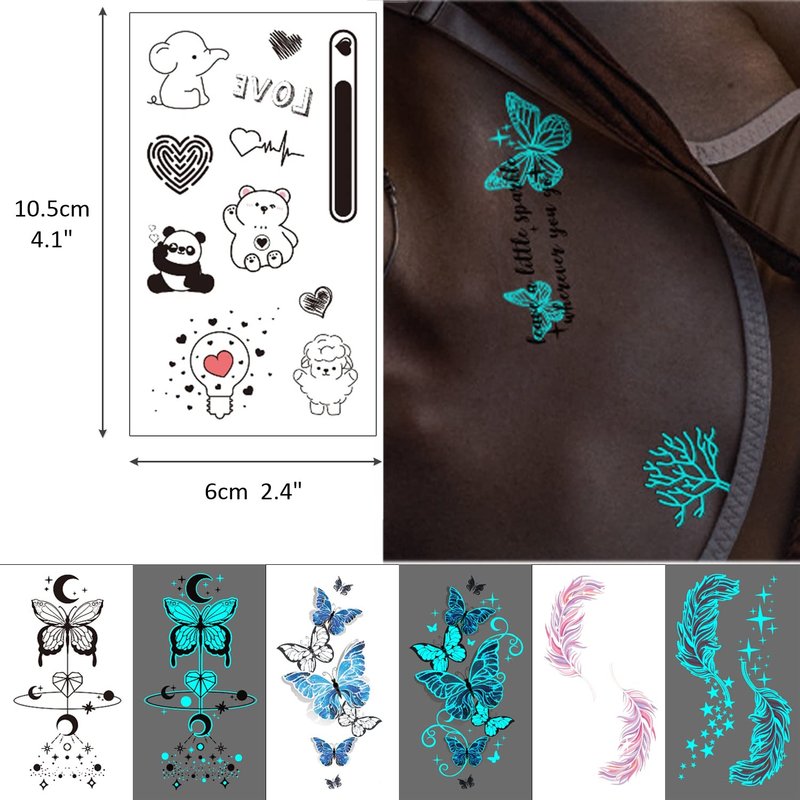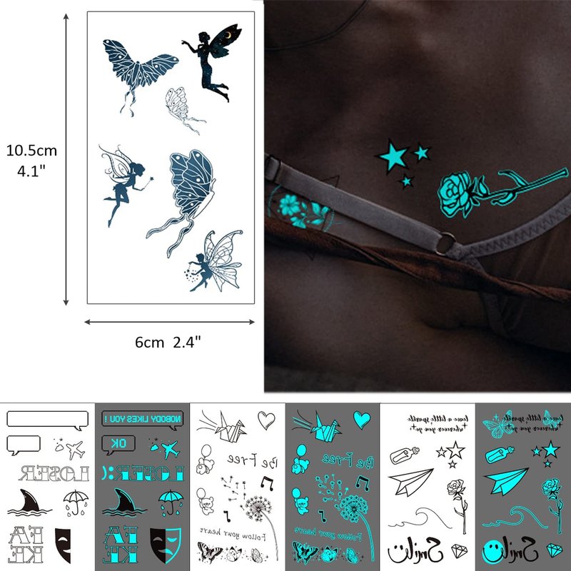 - 👑[VARIETY & UNIQUE] - 36 sheets of glow in the dark designs temporary tattoo stickers WELL PACKED for you from Glaryyears, which can be SHARED with your family and friends. SIZE: 2.4 * 4.1 inch(6 * 10 cm).