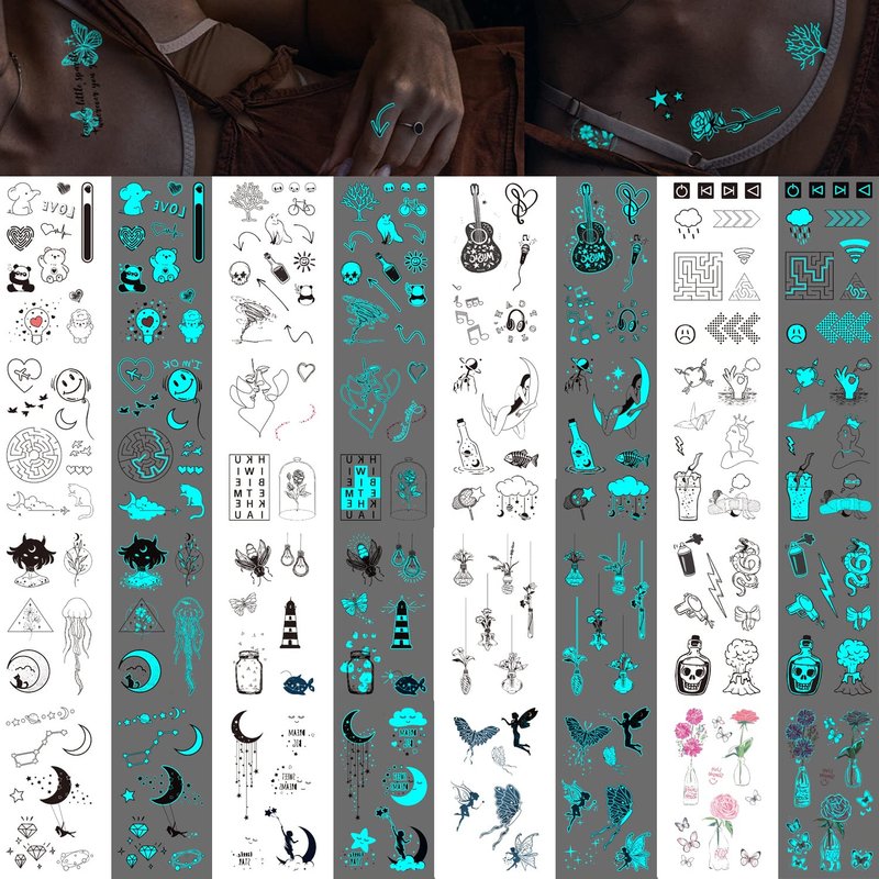 Package Included:36 Sheets Glow in the Dark Tattoo Stickers (With Over 180+ Patterns) as Picture.