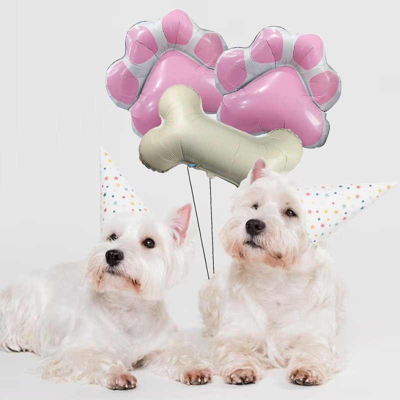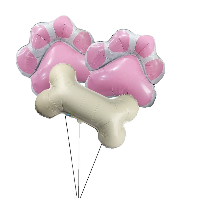 - 1pcs bone shaped balloon's size is: 29.5 x 17.7 inch; 2pcs dog paw shaped balloon's size is: 27.5 x 25.5 inch.
