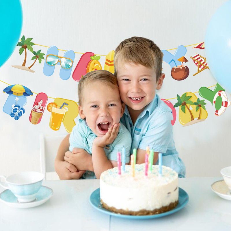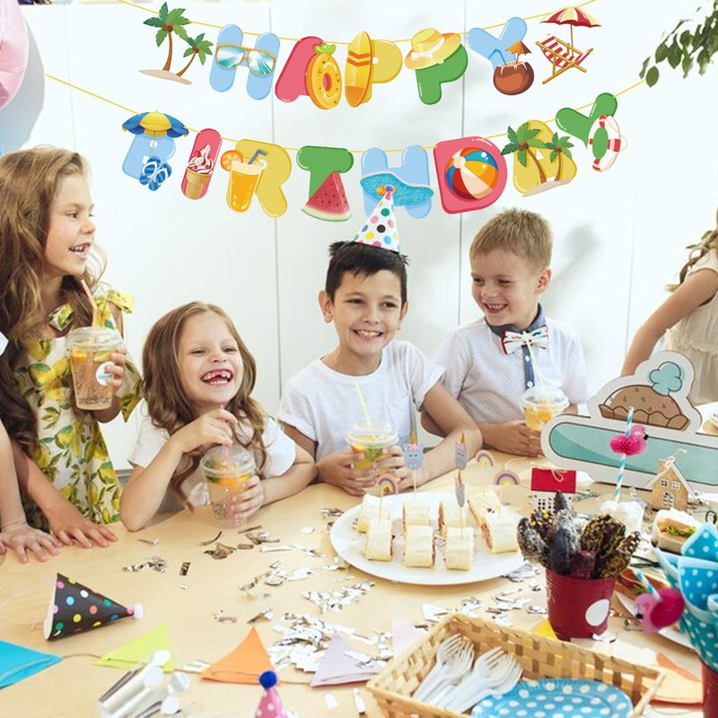 GLASNES Beach Happy Birthday Banner Pool Party Supplies Hawaiian Beach Tropical Swimming Theme Happy Birthday Decor Supplies