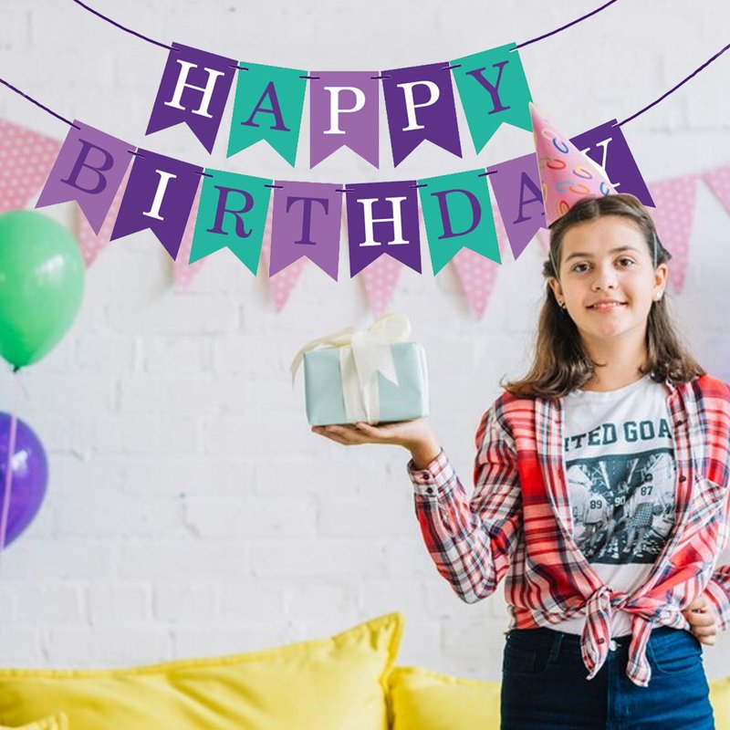 - 【Perfect Choice】Happy birthday banner teal blue purple easily fit any wall, fireplace, gift table, buffet table, garden, living room, family room, banquet hall, indoor or outdoor. Whether it's a anniversary, birthday, baby shower, wedding party, our teal blue purple birthday party supplies will create a festive atmosphere and make the birthday women feel special and is not only great for photo booth backdrop, but also good for other memories occasions.