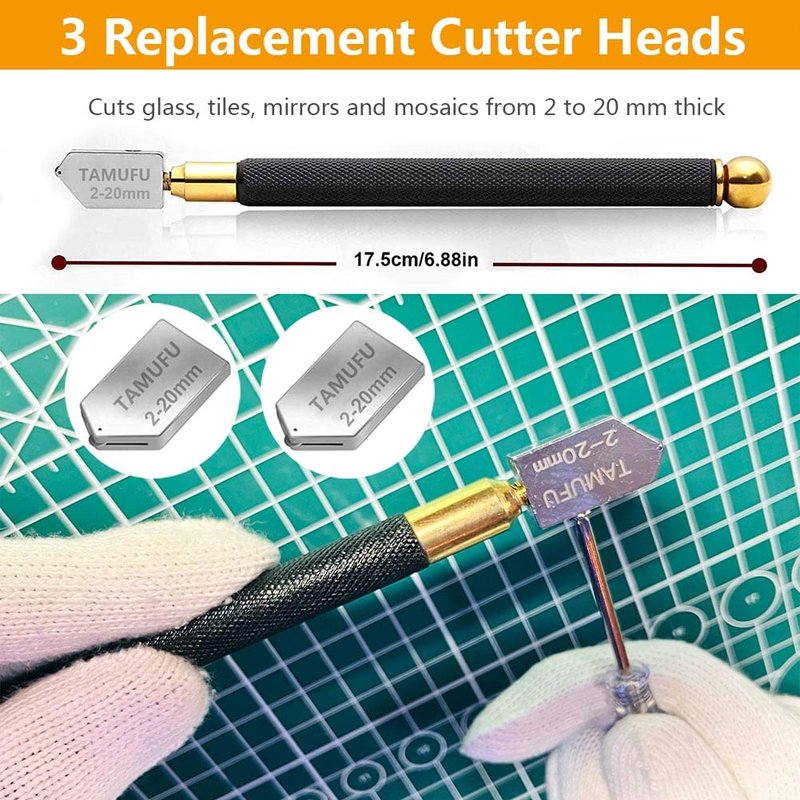 - 💕【Durable and Carbide Cutting Heads】: The glass cutters in this kit are equipped with 3 durable carbide cutting heads that can cut through different types of glass. With upgrade durable carbide cutting heads, our glass cutter can last over 18 miles of cutting life.