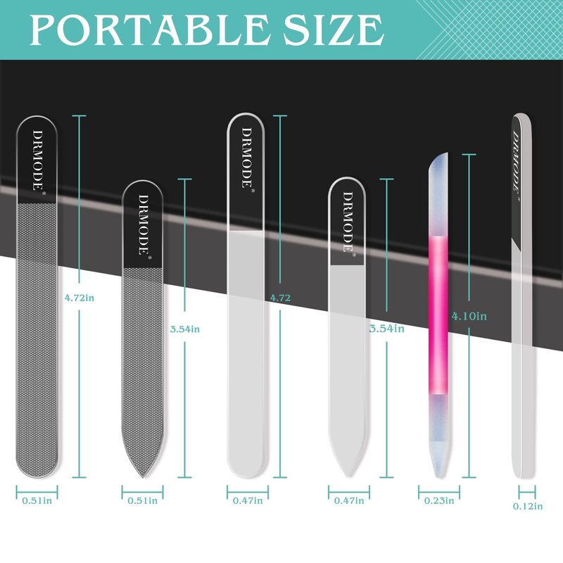 - Professional Nail File Set - DR.MODE glass nail file set includes 2pcs nano glass nail shiner, 2pcs crystal nail file and 1pc glass cuticle tool. A set of glass nail files for all your daily manicure needs. Glass nail files can be used for daily care to create shiny nails, buff nails, exfoliate nails and remove any residual nail polish from nails. Nano nail file can also be used as a baby or pet nail file and to rub dead skin from hands and feet