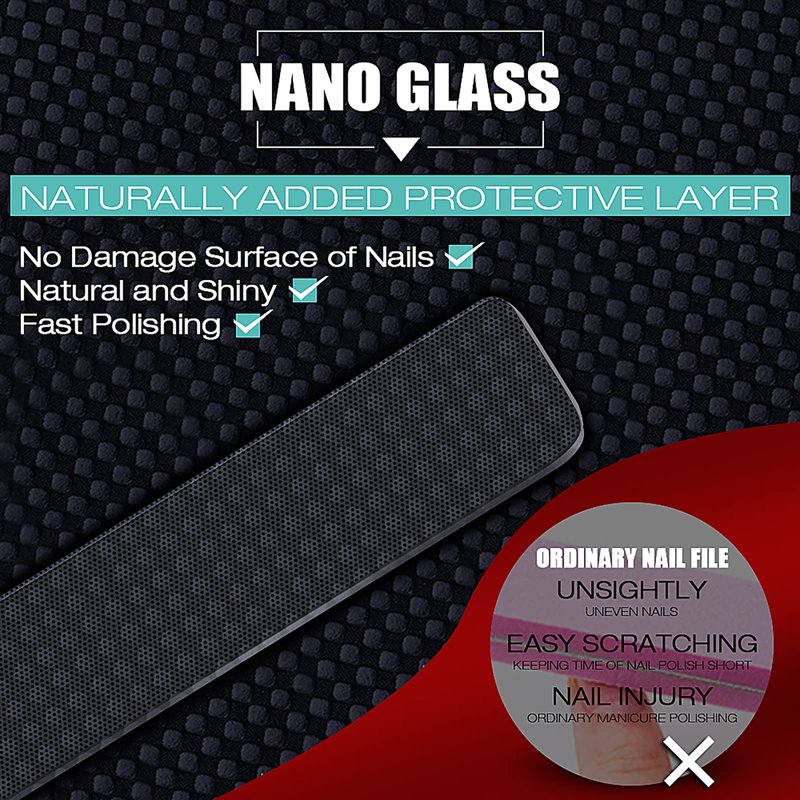 - ➤The Healthiest Nano Nail Shiner: 2021 latest upgraded version of nail shine buffers, made of high-density nano glass, a harmless nail tool highly recommended by the skin doctor, 30 seconds to a smooth glass-shine! No longer need clear polish, successfully get rid of damage to the surface of nails from inferior grit nail file.