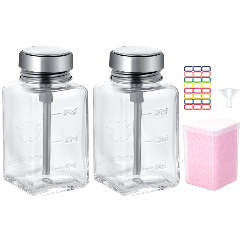 - 【One Stop Package】our glass pump bottle dispenser set package includes 6 oz pump bottle, 1 box lint free nail wipes(200 pcs), 1 pcs label sticker and 1 pcs funnel. So it is convenient for you can use them in multiple locations or keep it as a backup; Each bottle has a capacity of about 180 ml, which is plenty of space for your lotions, soaps, or shampoos.