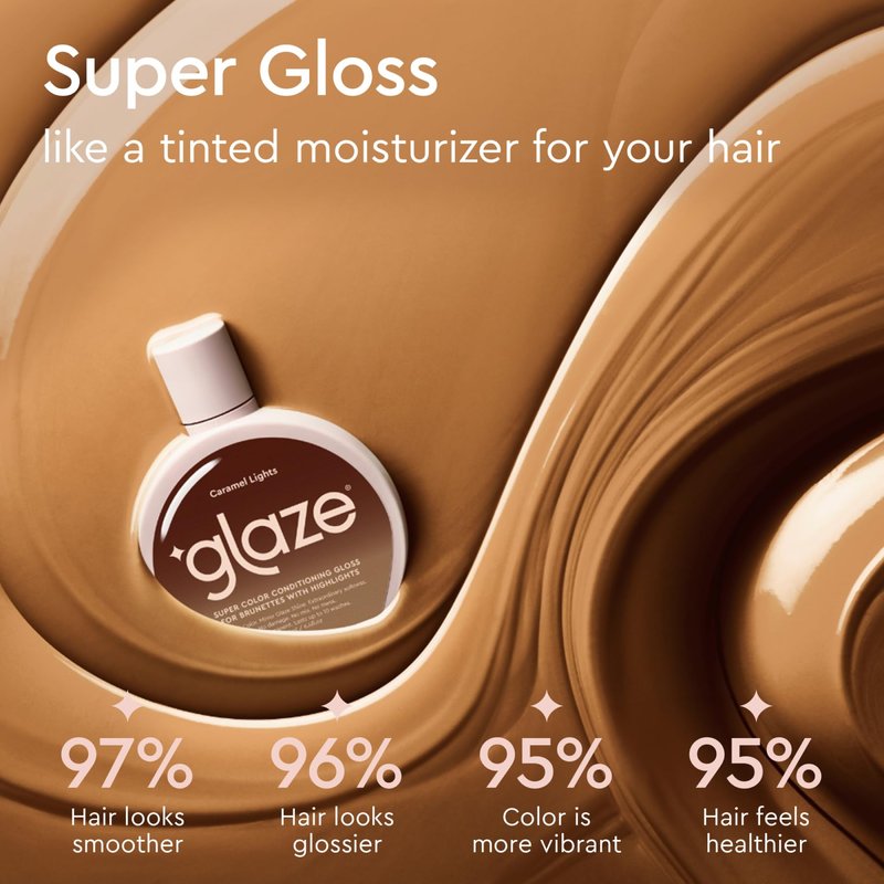 glaze Super Color Conditioning Gloss, Caramel Lights 6.4flo.oz (2-3 Hair Treatments) Award Winning Hair Gloss Treatment & Semi Permanent Hair Dye. No Mix Hair Mask Colorant with Results in 10 Minutes
