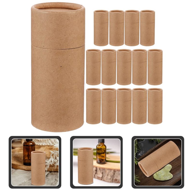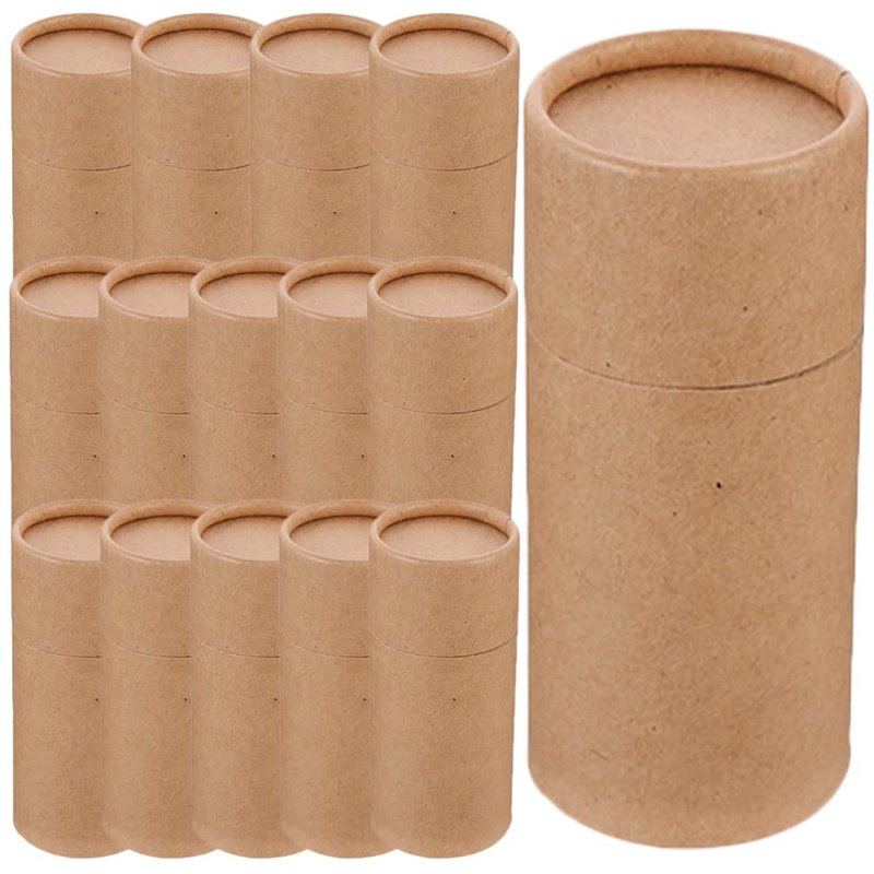 GLEAVI Empty Kraft Paper Jar Tube 15Pcs Round Paperboard 30ml Essential Oil Bottle Packaging Box Cardboard Deodorant Containers Brown Lipstick Boxes