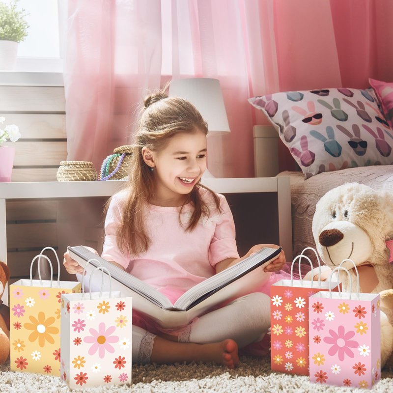 - Exquisite Patterns: the paper bags with handles are designed with boho and hippie theme daisy flower patterns, paired with bright colors, adding a big hit to your parties, while giving a deep impression to your guests