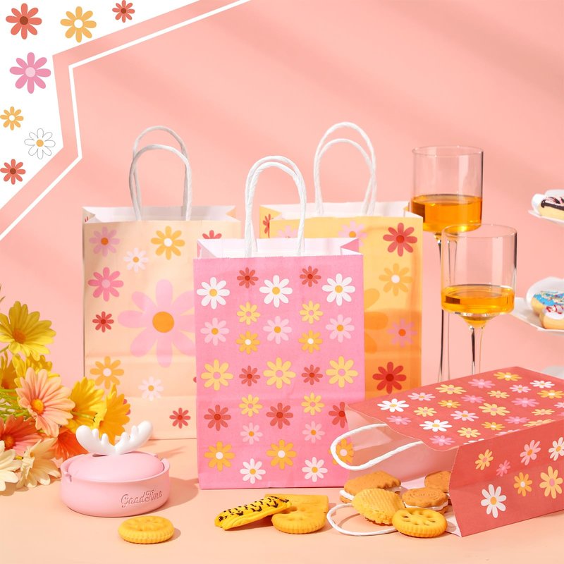 Glenmal 24 Pieces Daisy Flower Gift Bags Bulk Boho Daisy Party Favors Bags Daisy Goodie Treat Candy Bags with Handles for Girls Wedding Retro Birthday Baby Shower Spring Party Decorations Supplies