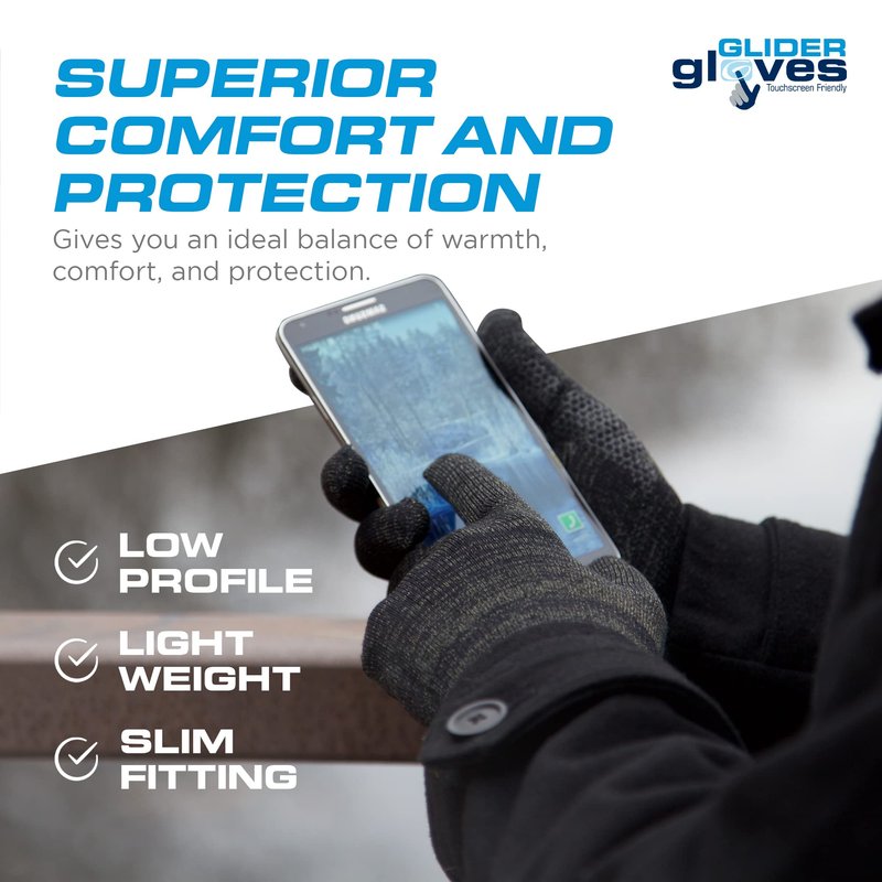 Using your smartphone should never be a hassle - whatever situation you’re in. Low profile, lightweight, and slim-fitting, Glider Gloves provide optimal hand protection while allowing you unparalleled full hand touch connection to your touchscreen devices.