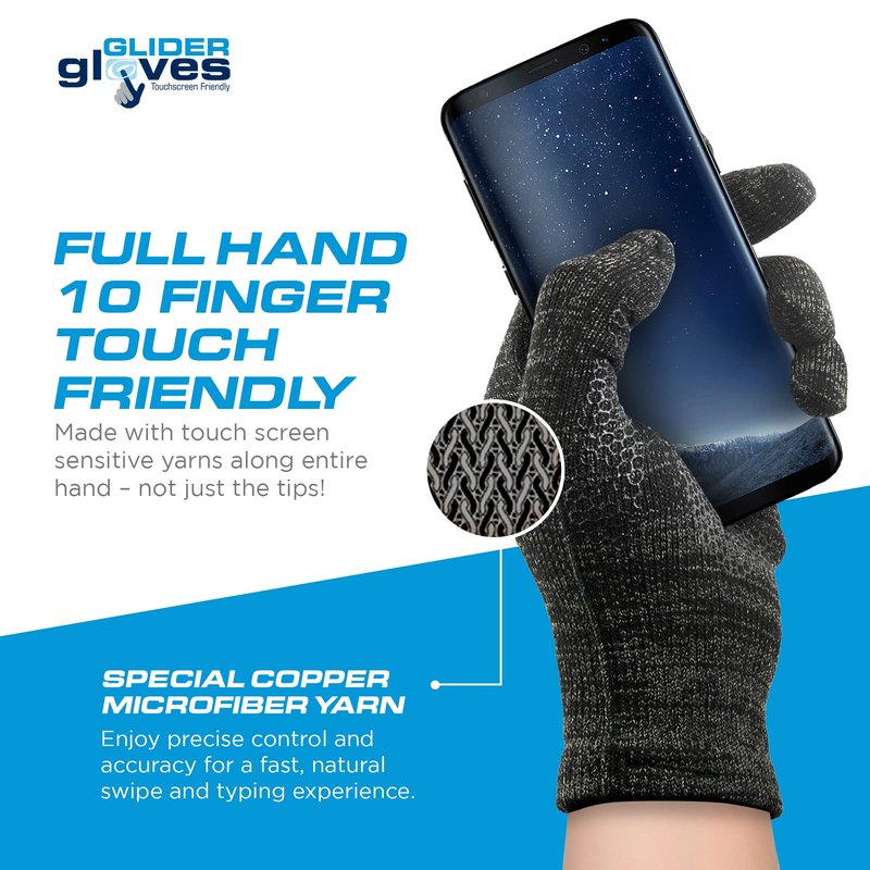 - ✔Full Hand Touch Screen Response - Our smartphone gloves are made of unique copper microfiber yarn that lets you enjoy fast, accurate typing on your touch screens. They’re utterly touch-sensitive for your entire hand - not just the tips!