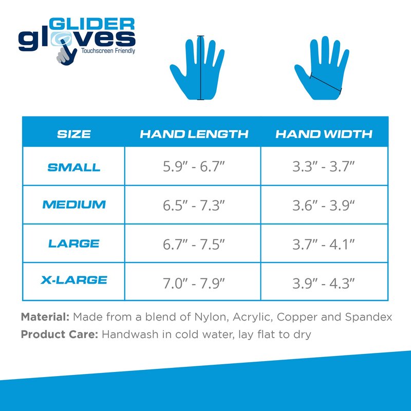 Note: Heavy usage or contact with dirt/salt may affect performance, so be sure to keep your gloves clean and dry as much as possible.