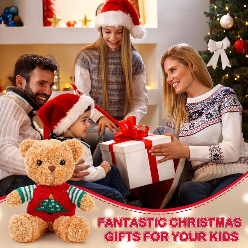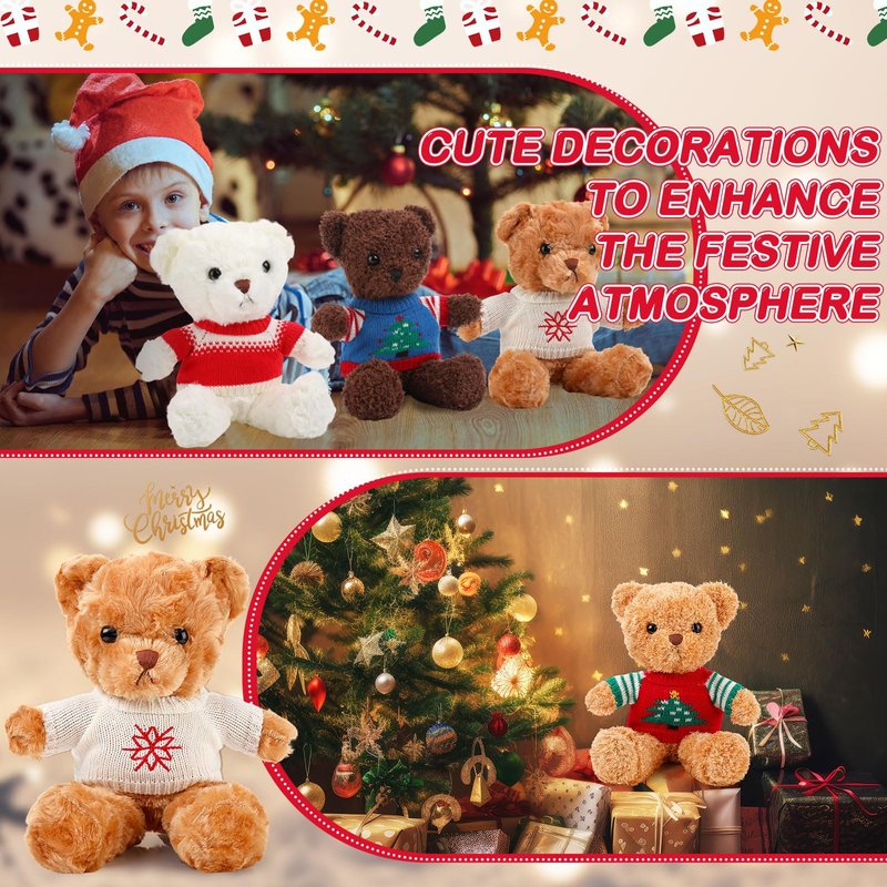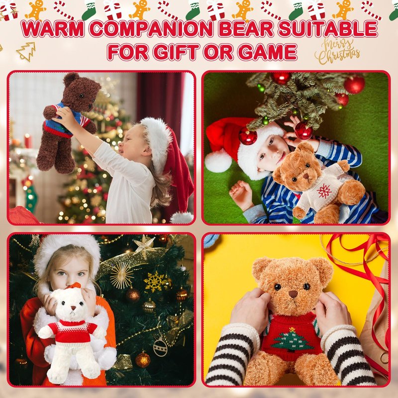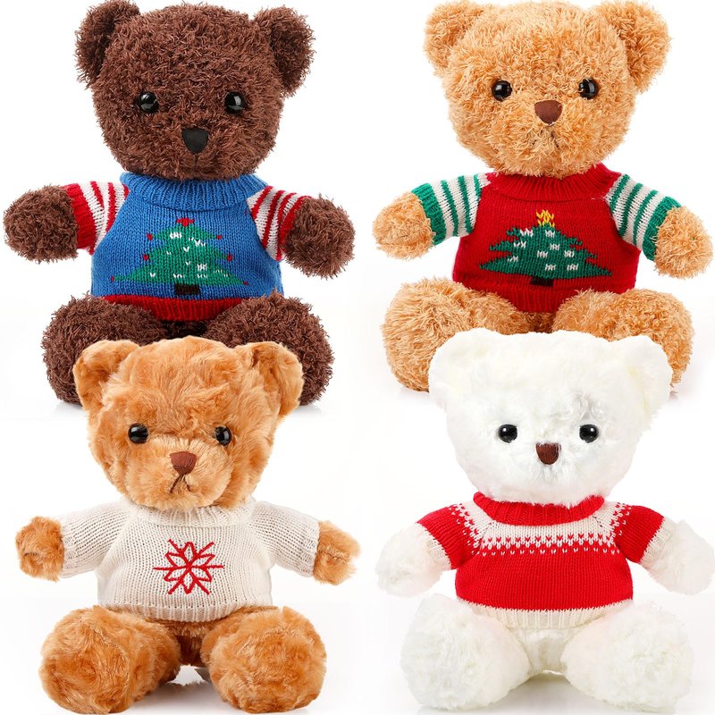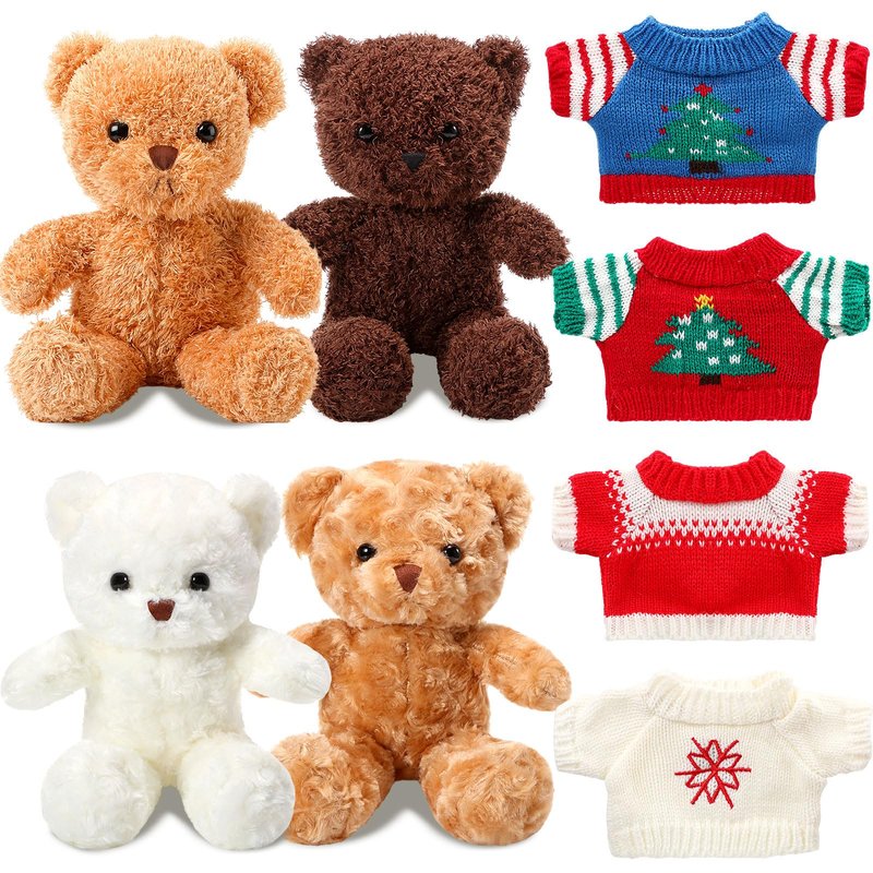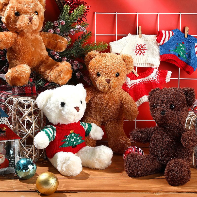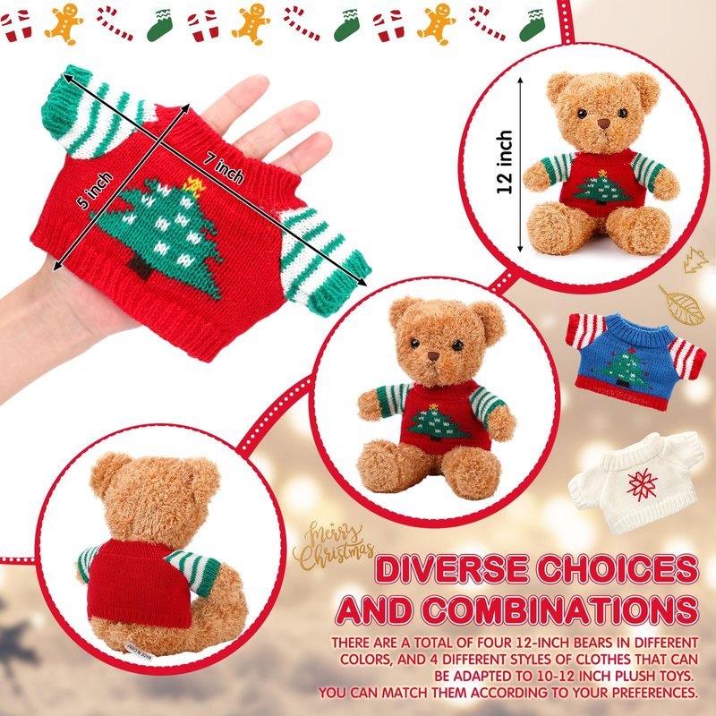 Glimin 4 Pcs Christmas Bear Stuffed Animals with Doll Clothes 12 Inch Cute Plush Bear with Removable Sweater Hoodie Xmas Doll Accessories for Plush Bear Dolls DIY Change Clothes(Fashion Style)