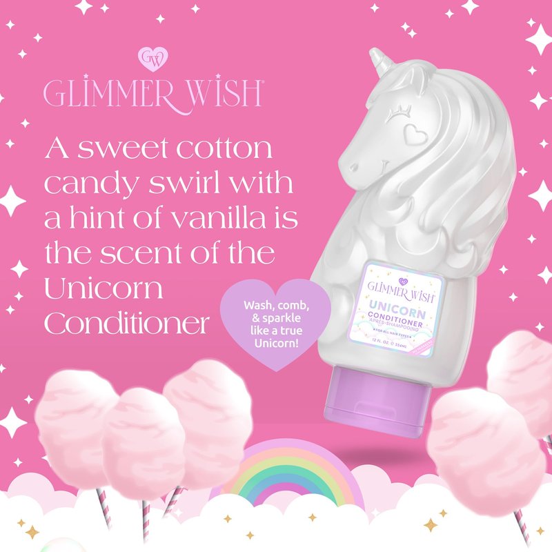 Glimmer Wish Unicorn Kids Conditioner, Paraben and Sulfate Free Conditioner for Strong and Smooth Hair, Kids Hair Care, Cotton Candy Scent, 12 Fl Oz