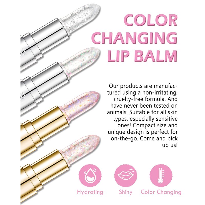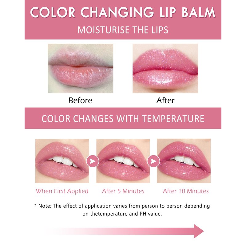 - COLOR CHANGING LIP BALM - This color changing lip balm uses temperature-changing technology with lip temperature and different PH value to change the lip color to show the sparkling pink perfect bright effect. And create a shimmering hue that evolves with your mood and style, unleashing a world of dynamic beauty as our lip gloss reacts to your unique pH!