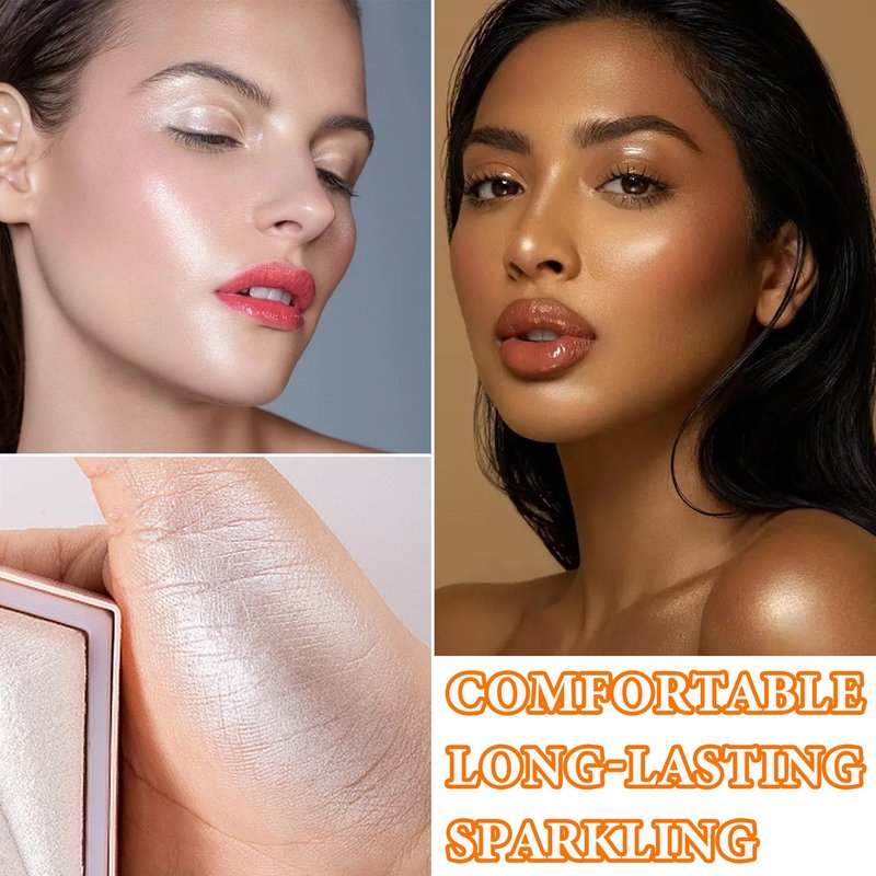 - 😽【Sparkling Highlight Palette】Highlight contouring palette has a fine, silky glitter powder that gives you a glamorous, shimmering, three-dimensional look, and it blends well to your skin, giving you the perfect amount of highlighting and shine.
