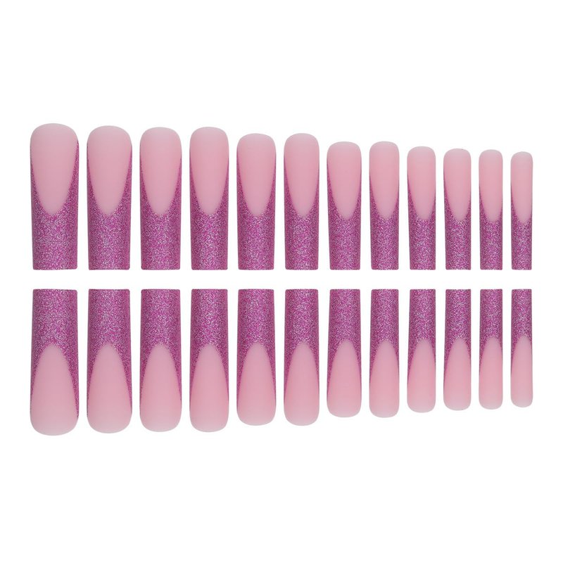 Glitter French Tip Press on Nails Long Square Fake Nails Purple Glitter Tip Design Artificial Nails Frosted Pink Glue on Nails Coffin False Nails Reusable Stick on Nails Acrylic Nails for Women 24Pcs