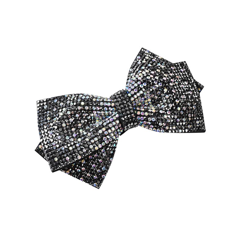 Glitter Handmade Crystal Beads Bow Hair Barrettes Rhinestone Bowknot Hair Barrettes for Thick Hair Chic Bling Butterfly Hair Clips For Styling Long Hair,2 Pack (Grey)
