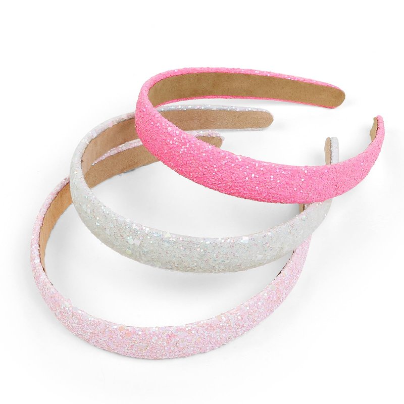 - Glitter Headbands - Every Girl Needs It! Compared to other regular girls headbands, our hair accessories for girls are sparkly and iridescent, but the glitter doesn't shed. Comes in a pack of 3 hairbands for girl's hair to match any outfit. 1 white sparkle headband for girls, 1 light pink kids headbands girls and 1 hot pink glitter headband for women. The glitter effect on the head band is perfect for those who love a little color to accessorize their wardrobe and fashion sense, too.