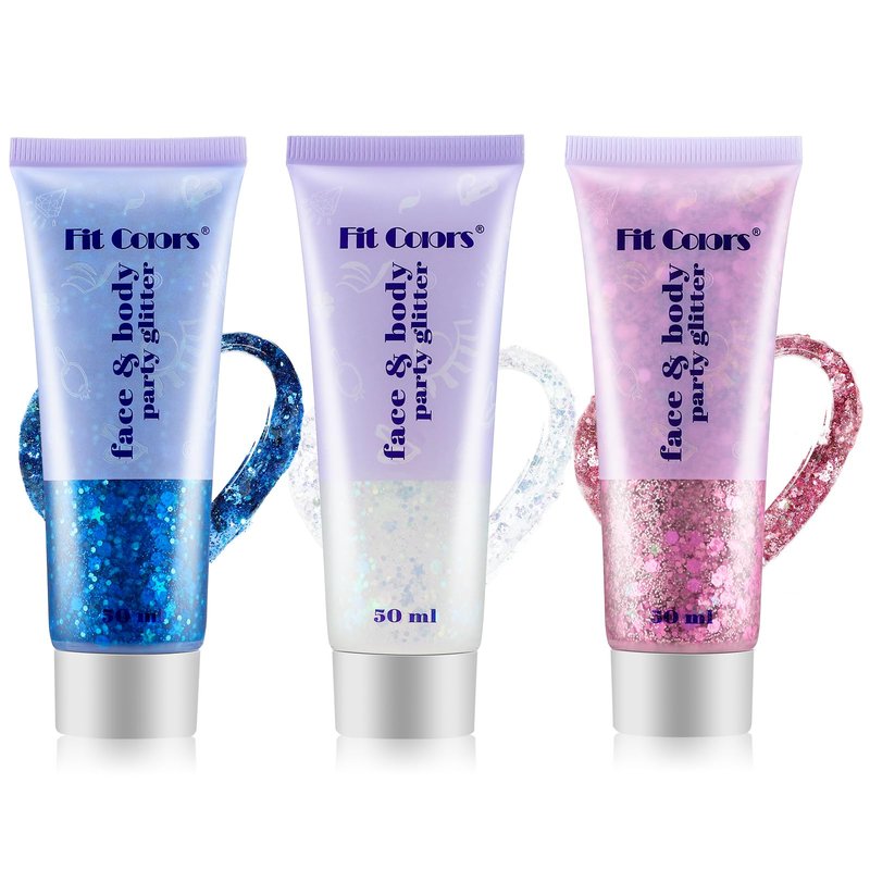 - ღ Halloween Body Glitter Kit ღ There are various sizes and shapes of glitters in the gel. You apply the gel wherever you want a little extra sparkle, and the gel dries/evaporates and leaves the glitter behind. The sparkle is quite lovely, the application lasts just as long as other much more expensive &/or name brands