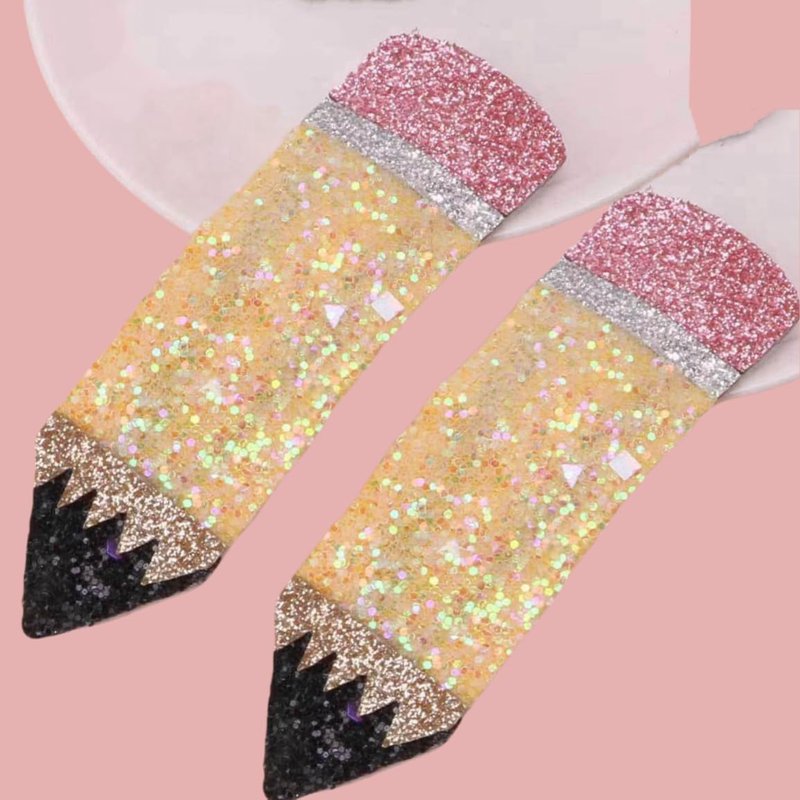 - Handmade School Themed Pencil Decor Hair Clips- 2pcs beautiful first day of school hair clips,Square-shape pencil clips are a fun and easy way to style your hair. glitter and High Quality ,makes perfect back school gift for her first day of back to school