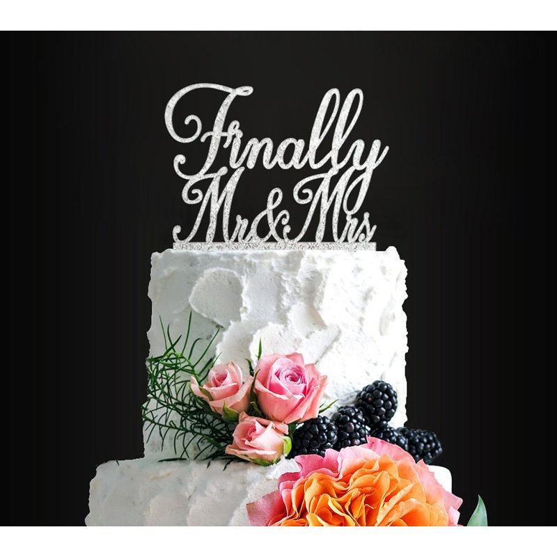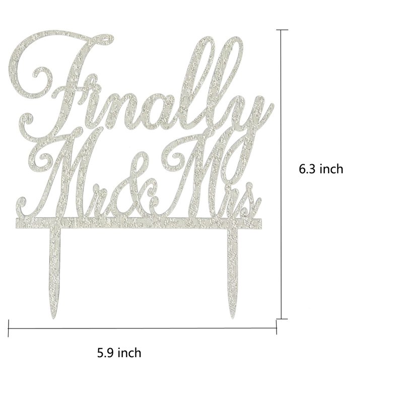 - This "Finally Mr & Mrs cake topper" is made of food-safe silver acrylic.