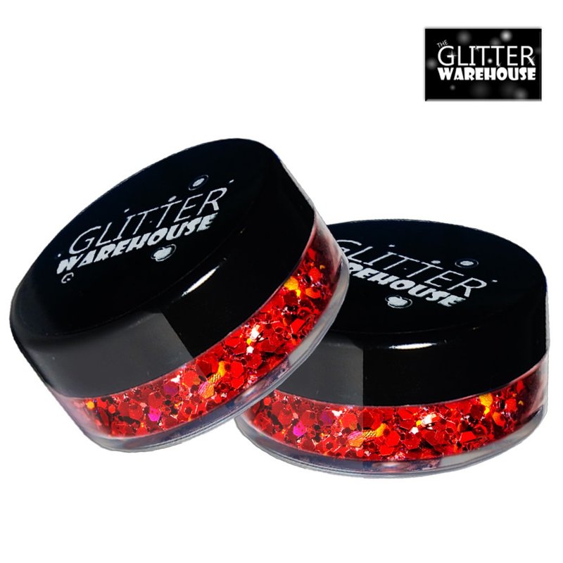 GlitterWarehouse Red Chunky Glitter Loose Holographic Solvent Resistant Cosmetic Grade Mermaid Glitter (10g Jar)