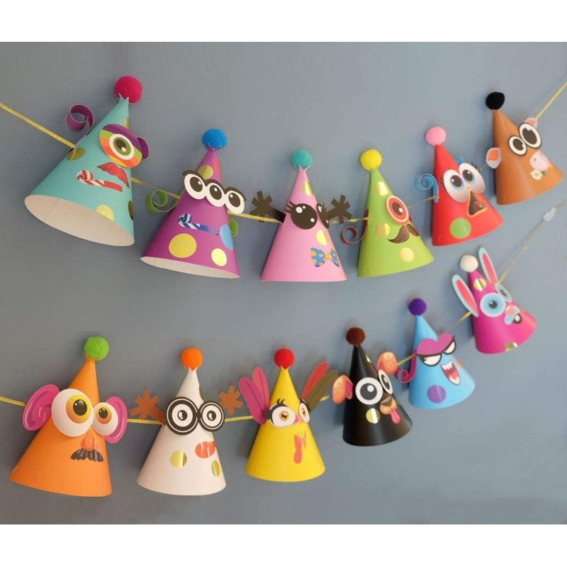 - LONG-LASTING AND BRIGHT COLOR cutout hats printed with matte lamination. Savor the memories by using them for display during and after a party. String them up as a banner to decorate nursery, daycare, classroom, photo studio and play room.