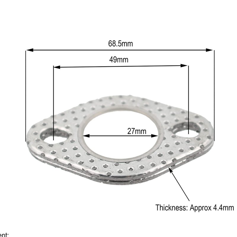 - Premium Metal Exhaust Gasket L: 68.5mm; ID: 27mm; W: 45.8mm; H: 4.4mm; Bolt-to-Bolt Space (Center): 49mm