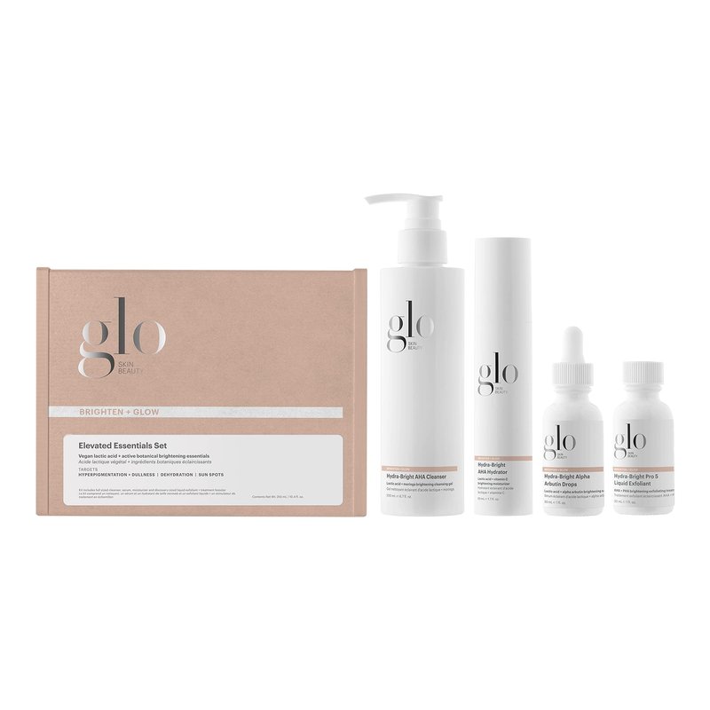 - Brighten + Glow with this full-sized trio of Elevated Essentials + a bonus discovery-sized exfoliating treatment. Set includes Hydra-Bright AHA Cleanser, Hydra-Bright AHA Hydrator, Hydra-Bright Alpha Arbutin Drops & Hydra-Bright Pro 5 Liquid Exfoliant.