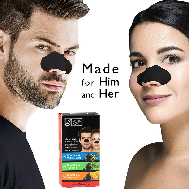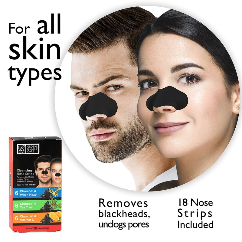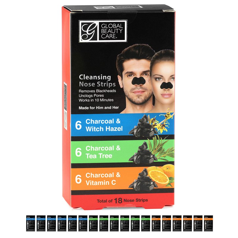 Global Beauty Care 18 Nose Cleansing Strips VARIETY PACK Charcoal with Tea Tree, Witch Hazel, & Vitamin C For Blackheads Removal Strips - 18 Ct