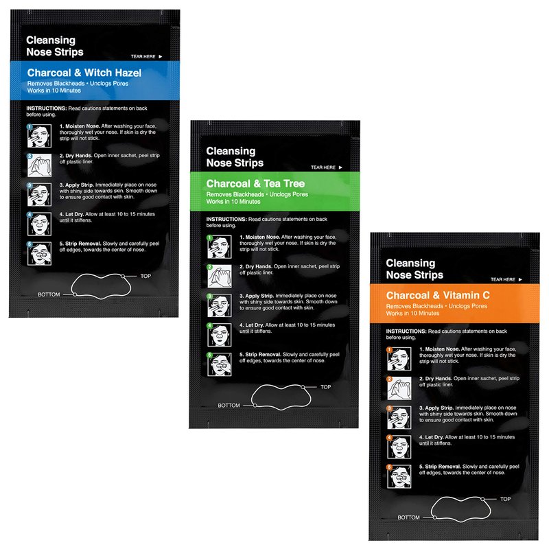 - Package Contains: 6 Charcoal & Tea Tree, 6 Charcoal & Witch Hazel, 6 Charcoal & Vitamin C Strips