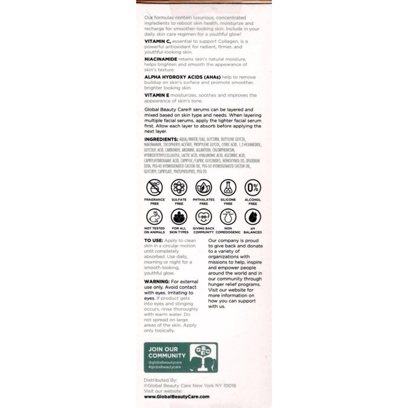 - Experience the transformative power of Vitamin C and a carefully curated blend of ingredients with our Global Beauty Care Glowing Vitamin C 3-Piece Set. Your journey to glowing, healthy skin begins here. Upgrade your skincare routine with this comprehensive set and embrace a more radiant, youthful you. Order now and enjoy the benefits of Global Beauty Care's expertly crafted products.