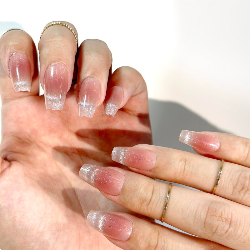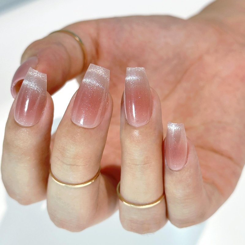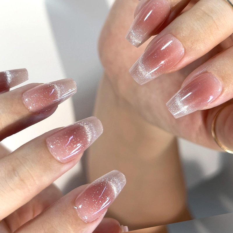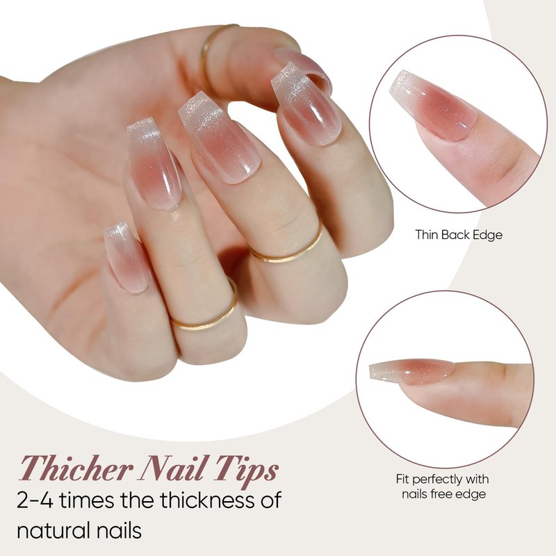 - 【ACRYLIC NAIL TIPS ULTRA FIT】 Acrylic uv gel nail kit come with jelly nude pink cat eyes french style design, Globlingle soft gel nail tips contours to the nail perfectly from cuticle to free edge. Thick nail tips and thin back edge, Each nail features a tapered fit towards the cuticle to give you the most natural look! Medium Coffin sliver glitter cat eyes French tip press on nails extension design perfect for any occassion!