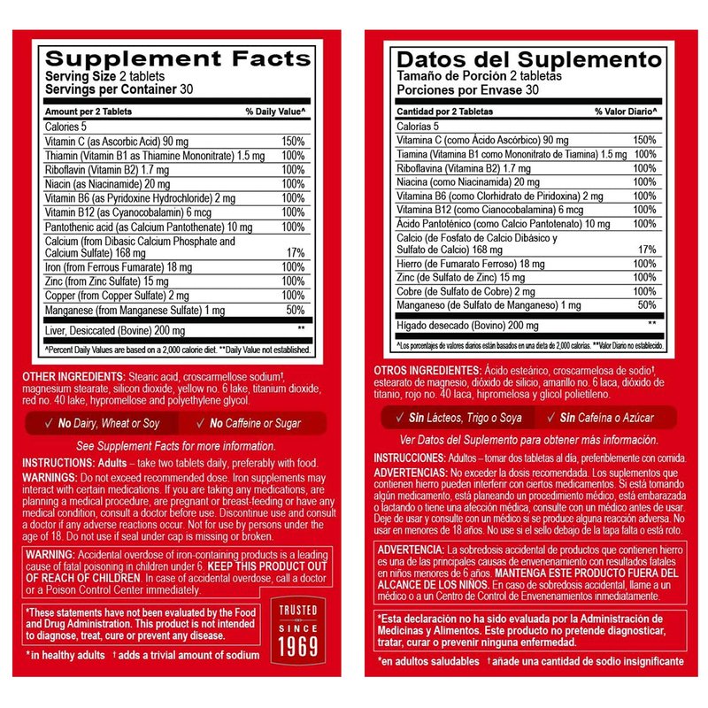 - Globulo Rojo Iron Supplements feature a high potency formula which provides a great source of Iron, six B-Vitamins, Vitamin C, Beef Liver and Zinc