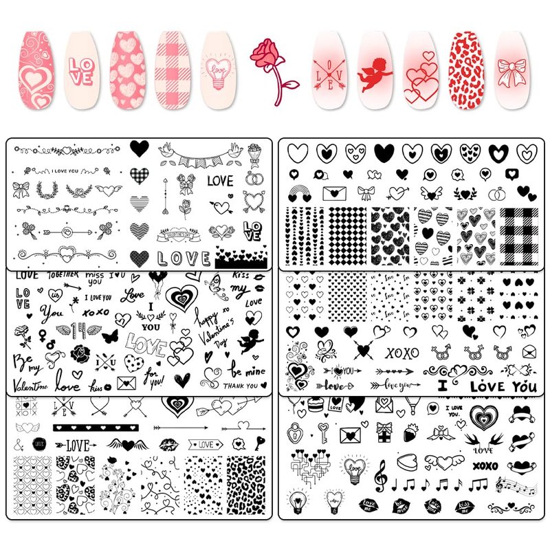 - 【What You Get】Package Included Lips Leopard Print Plaid Cupid LOVE Music Symbol lots of Heart-shaped pattern nail stamping plate. Total 6 pcs Valentine Fun Romantic nail art stamping plates.