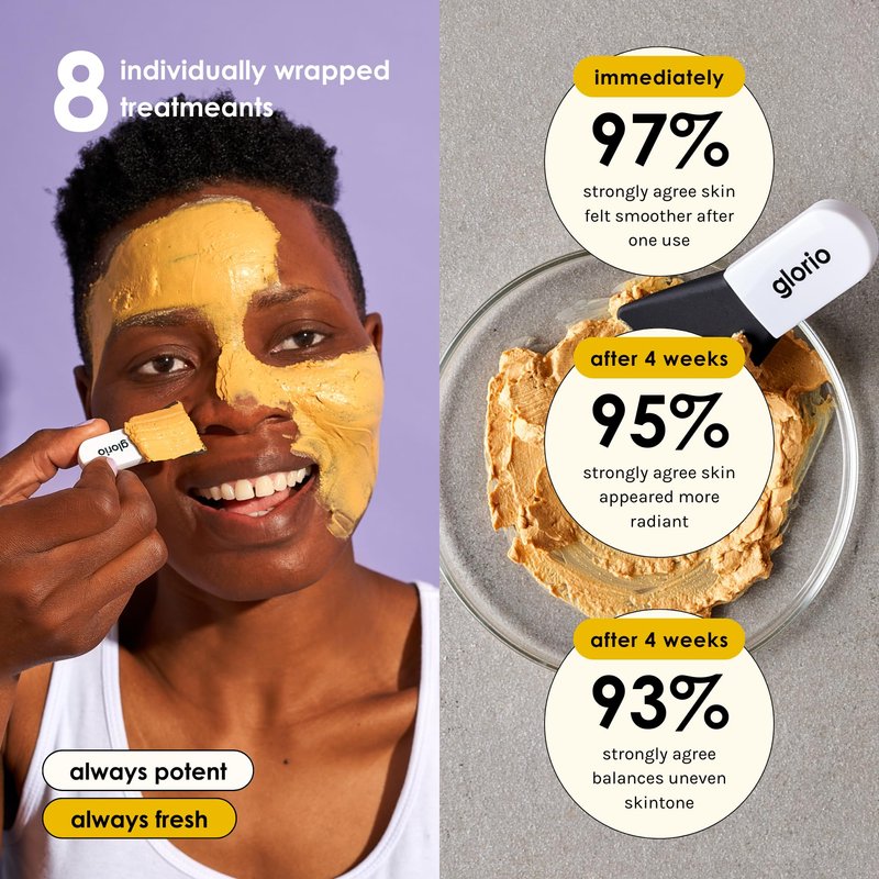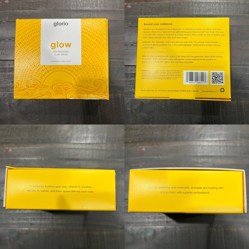 "🌟 Discover Radiance with Glorio's Glow Revitalizing Clay Mask! 🌟 Transform your skincare routine with our exquisite Glow Revitalizing Clay Mask, crafted meticulously by Glorio for those who seek unparalleled skin care. Whether you're prepping for a bachelorette party or simply indulging in self-care, this facial mask is your ticket to glowing, radiant skin! Our luxurious clay mask combines the finest Gold Clay from Brazil and Aztec Clay to deeply purify and rejuvenate. Infused with Australian Kakadu Plum and Vitamin C, it delivers a potent dose of antioxidants and radiance-boosting power. The addition of Wu-Zhu-Yu and Swiss Apple Stem Cells work wonders in revitalizing and improving the luminosity of your skin. Plus, the gentle exfoliating action of Pumice ensures your complexion is smooth and refined. Each set includes 8 single-use pods to maintain freshness and potency for up to 8 weeks of fantastic facials. The included silicone brush ensures a smooth and hygienic application every time. Packaged in a beautiful, plastic-free gift box, this set makes an ideal self-care gift for women, teens, and even men - perfect for any occasion. Our Glow Revitalizing Clay Mask is proudly made in the USA and is the ultimate facial mask for women skin care. It's more than just a face mask; it's an experience. Ideal for those who cherish beauty & personal care, this clay mask for face is part of our exclusive skincare set designed to meet the highest standards. Key Features: - Premium Gold Clay and Aztec Clay for deep cleansing - Enriched with Australian Kakadu Plum, Vitamin C, Wu-Zhu-Yu, and Swiss Apple Stem Cells - Exfoliating Pumice for smooth, radiant skin - 8 single-use pods for maximum freshness - Silicone brush for easy application - Beautiful, eco-friendly gift box - Suitable for all skin types, including sensitive skin - Perfect self-care gifts for women, men, and teens Ideal for gifting, our Glow Revitalizing Clay Mask makes a thoughtful addition to beauty products for women, skincare sets, and self-care items. It's an excellent choice for bachelorette party gifts, gifts for teens, or anyone looking to glow up their skincare routine. Embrace the beauty secrets of radiant skin with Glorio. Your journey to luminous, revitalized skin starts here. Join the facial skin care revolution with our exclusive clay mask and reveal your most radiant self! ✨ Glorio Glow Revitalizing Clay Mask – because you deserve to shine! ✨"