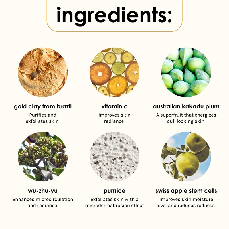 - 100% NATURAL: Ethically sourced & beautifully formulated with exfoliating Gold Aztec Clay from Brazil. Brighten, firm and purify with Vitamin C, Australian Kakadu Plum & Swiss Apple Stem Cells.