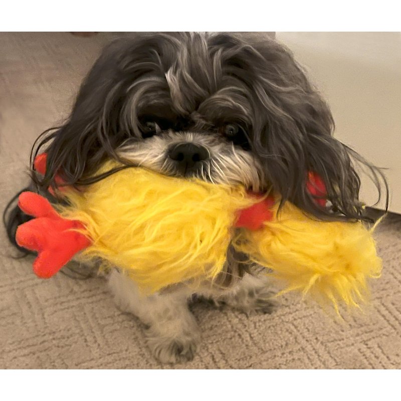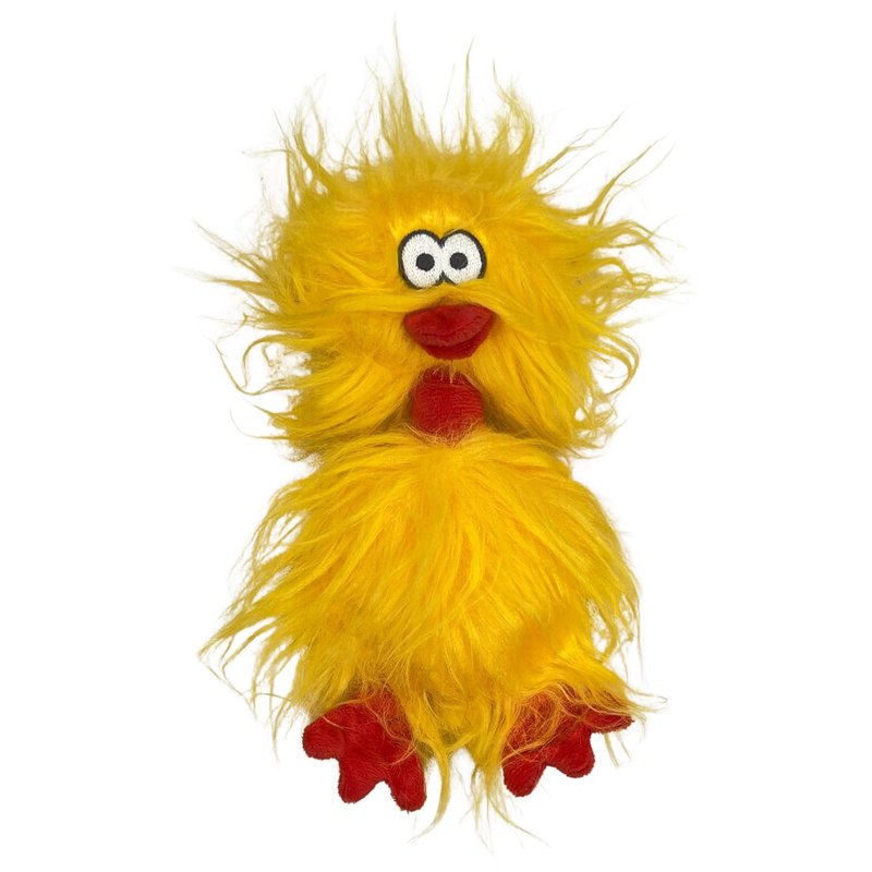 Phyllis the Crazy Chicken is here to captivate your furry friend with her mesmerizing golden mane. Equipped with dual squeakers, floppy feet, and a wiggly body, she guarantees endless entertainment. Phyllis's head boasts a charming wobbliness, thanks to her floppy chicken neck, while her feet are perfect for a gentle game of tug of war or keep-away. Despite her wide-eyed appearance, her embroidered eyes and double-stitched mouth are built to withstand vigorous chewing. Plus, her feather-like polyester fluff is luxuriously soft, ideal for your canine companion's cozy naptime snuggles. Crafted from polyester and filled with polyester fibers, Phyllis is easily maintained through gentle hand washing and air drying. Designed for small to medium-sized dogs, she's the ultimate playmate for your beloved pet.