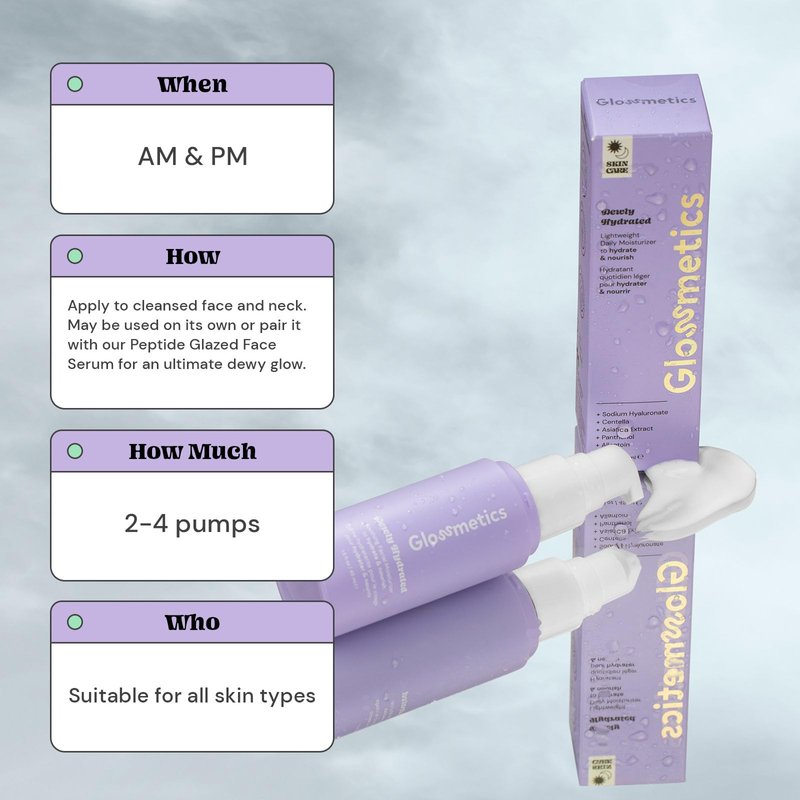 Glossmetics Dewly Hydrated Lightweight Daily Moisturizer with Centella Asiatica skin care, panthenol moisturizer - Korean Moisturizer Face Cream for Combination Skin
