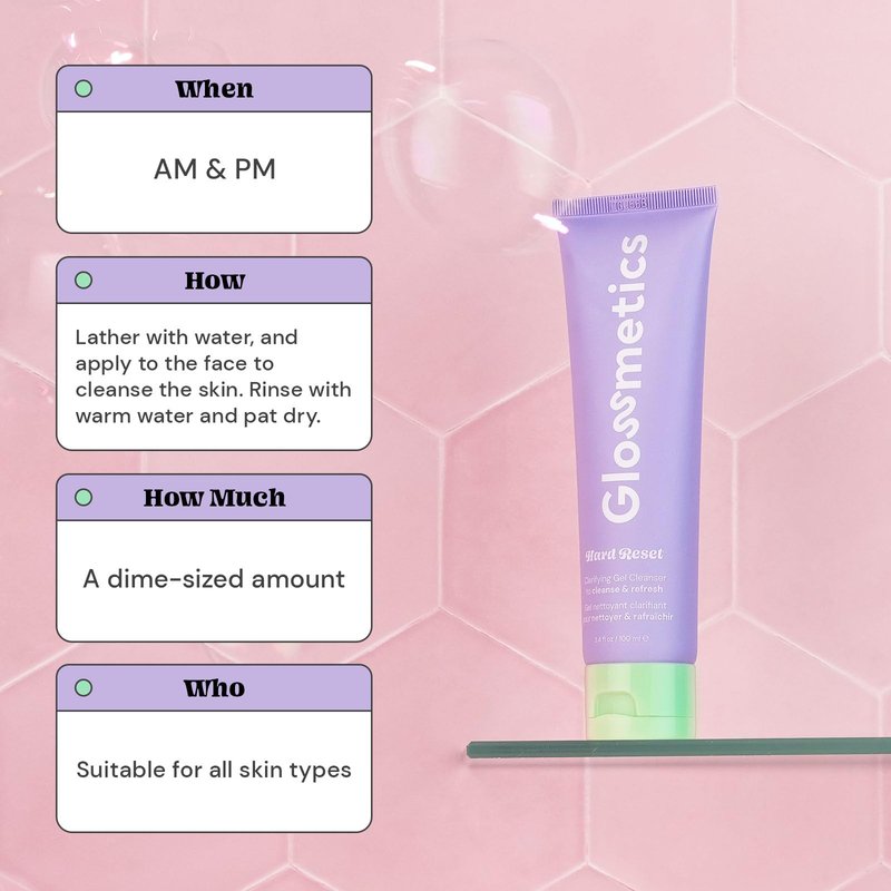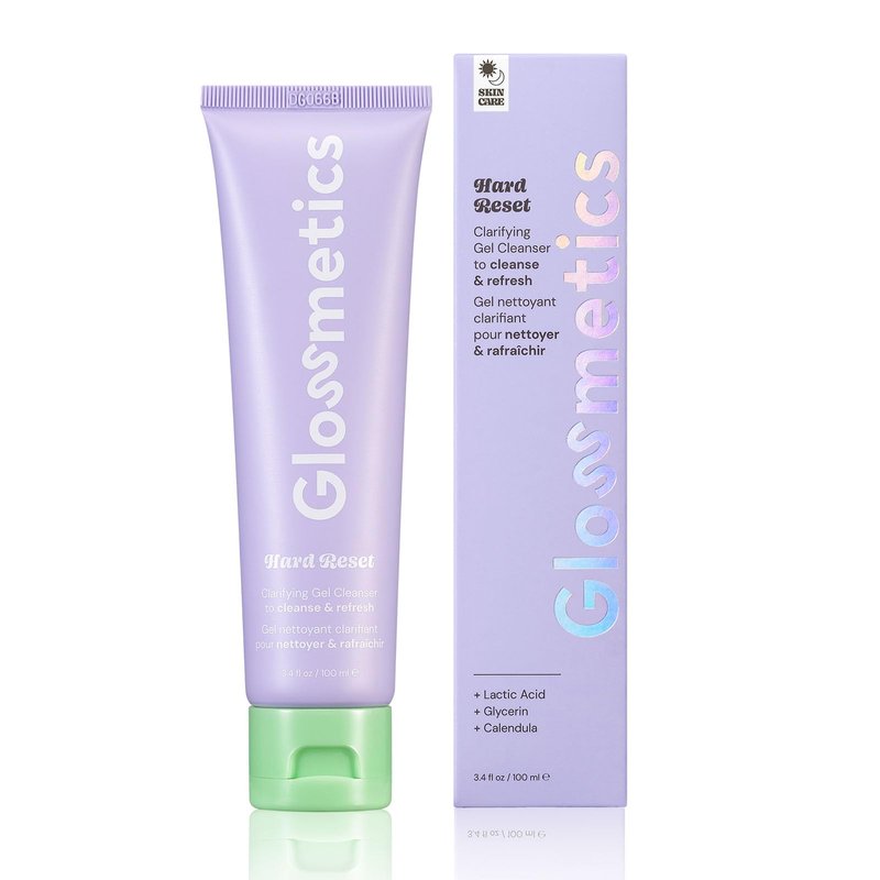 Glossmetics Hard Reset Clarifying Gel Face Cleanser for Normal to Combination Dry Skin, Hydrating Makeup Remover with Calendula, Lactic Acid, Glycerin