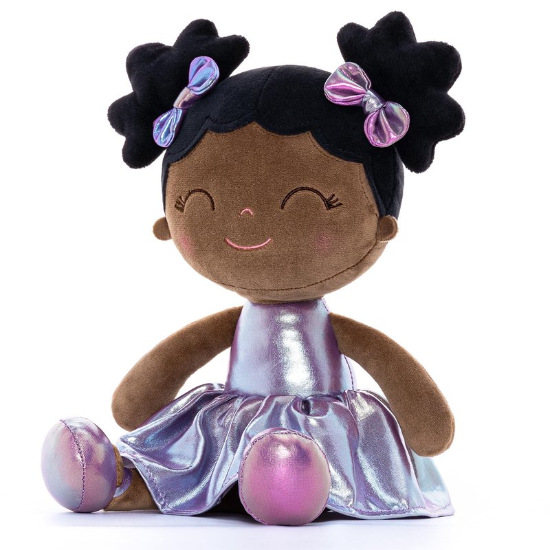 Gloveleya Baby Girl Gifts Baby Dolls Soft Doll Curvy Illusion Girl Black Purple 12inches Beautiful Purple Plush Doll for Girls: This Gloveleya soft baby doll is dressed in a shiny purple dress, making it a stylish and adorable companion for baby girls aged 0-6 years. Its soft and comfortable materials make it perfect for cuddling, while its safe design ensures peace of mind for parents. Whether for playtime or naptime, this doll is a great gift for young children. Keywords: Doll, Soft baby dolls, first baby doll, Baby Doll for 1 year old.