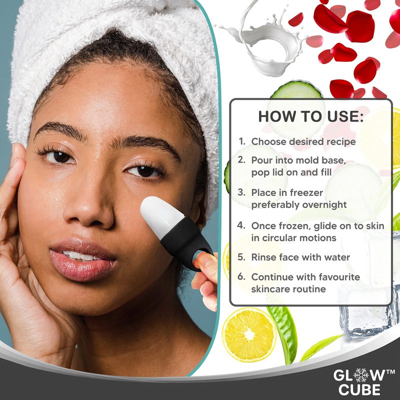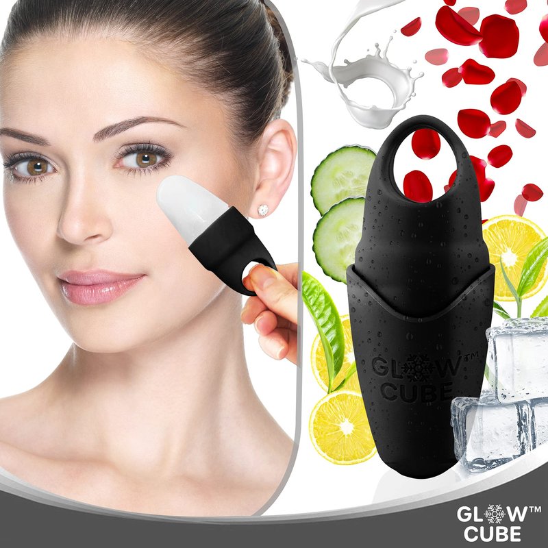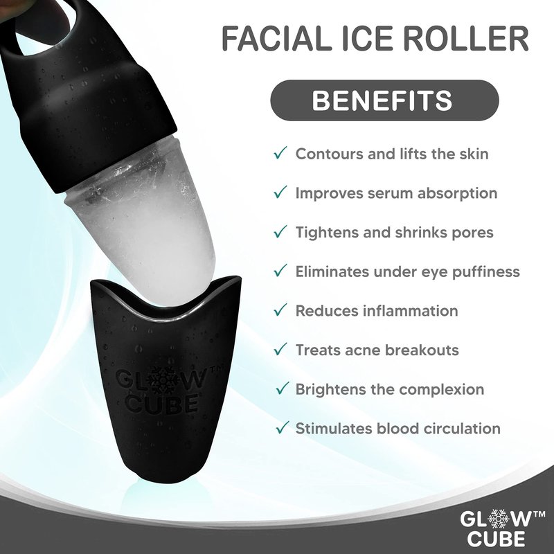 Glow Cube Ice Roller For Face Eyes and Neck To Brighten Skin & Enhance Your Natural Glow/Reusable Facial Treatment to Tighten & Tone Skin & De-Puff The Eye Area (Black Mini)