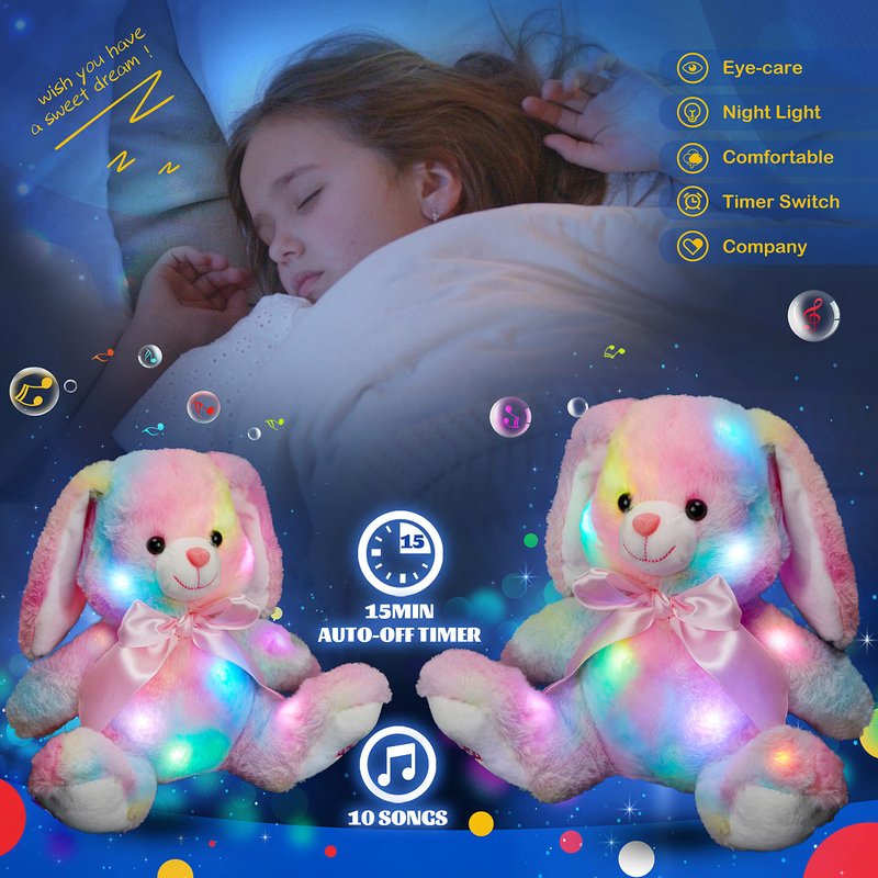 Glow Guards Bunny Plush Toy light up musical stuffed soft plush toy with night lights glow in the dark birthday holiday gifts for toddle kids boys girls.