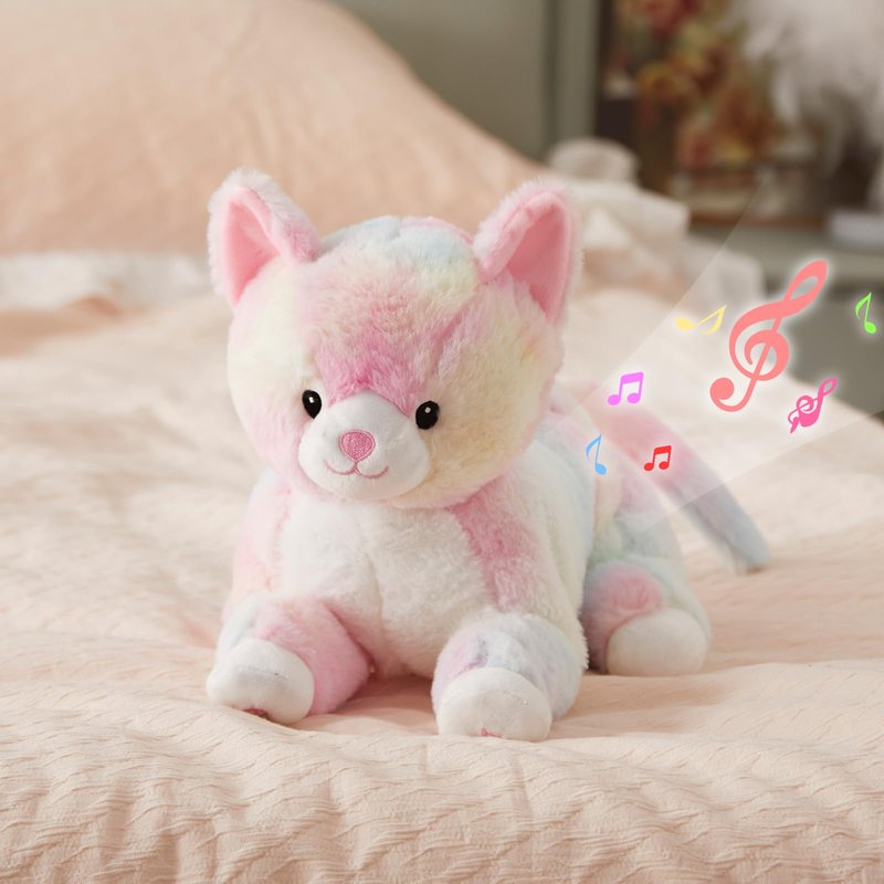 Musical Light up Rainbow Cat Stuffed Animal, Rainbow Kitty Soft Stuffed Animal, Singing Glowing Cat Plush Toy Bed Night Light Birthday Gift for Toddler Kids