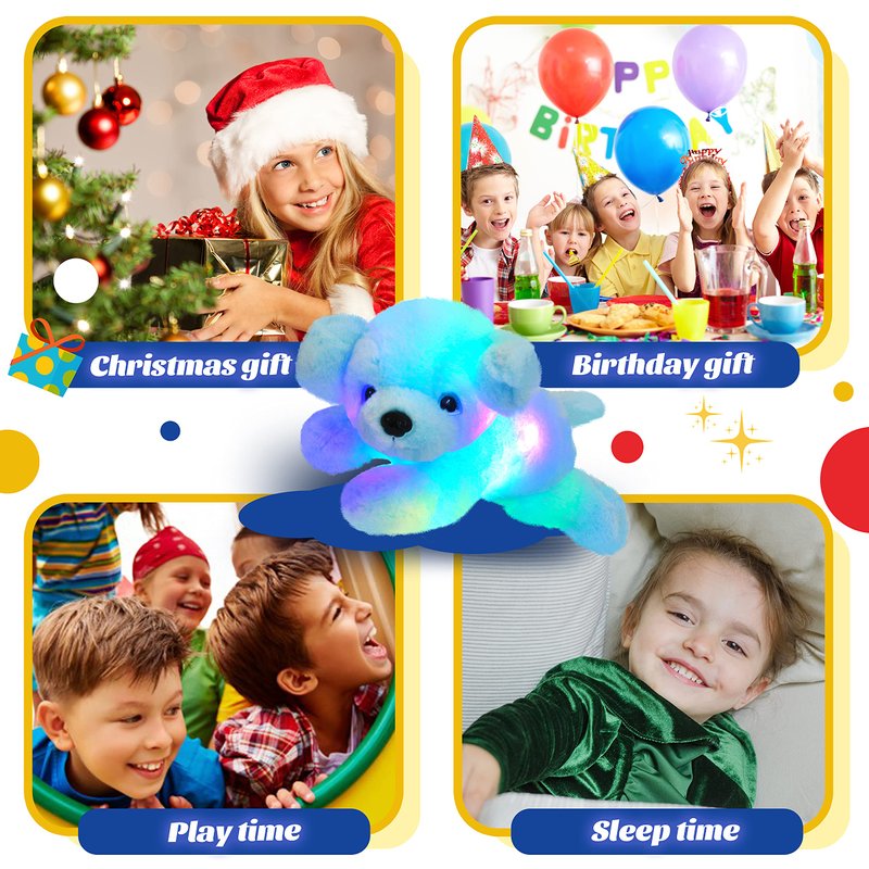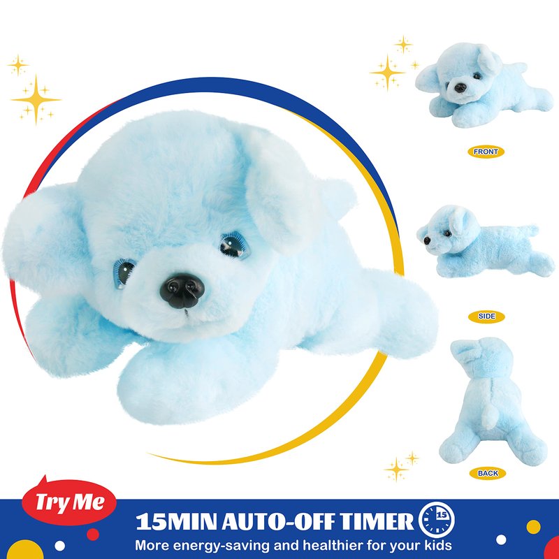 - GLOW GUARD IN DARKNESS-The cuddly light up puppy dog plush toy can glow in the dark, which can bring soothe and sense of security for toddler kids, especially for those who are afraid of darkness when they sleep alone. Besides, the stuffed stuffed dog is very soft to touch, it will be a good friend of your kids and accompany them to have a great childhood.
